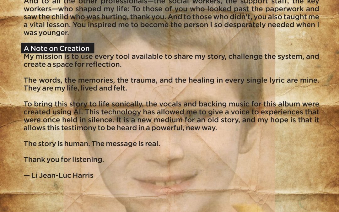 the album Insert Page 2 for the album made by Li Jean-Luc Harris Called The House That Trauma Built